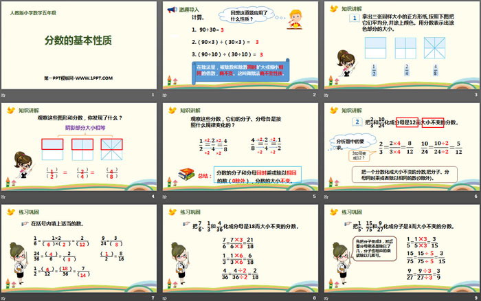关键词:人教版五年级下册数学PPT课件免费下载,分数的基本性质PPT下载,分数的意义和性质PPT下载,.PPT格式;