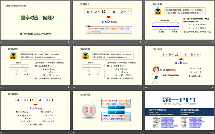 关键词:人教版六年级上册数学PPT课件免费下载,量率对应问题PPT下载,分数除法PPT下载,.PPT格式;