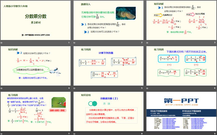 关键词:人教版六年级上册数学PPT课件免费下载,分数乘分数PPT下载,分数乘法PPT下载,.PPT格式;
