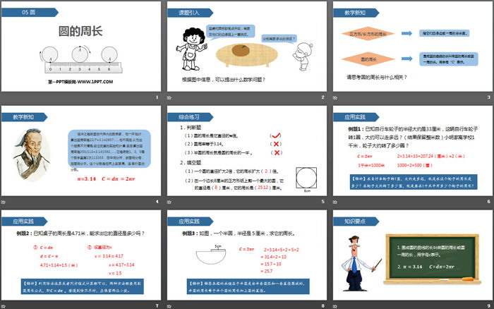 关键词:人教版六年级上册数学PPT课件免费下载,圆的周长PPT下载,圆PPT下载,.PPT格式;