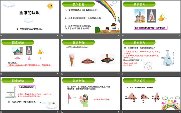 1、掌握圆锥的各部分名称和特征。