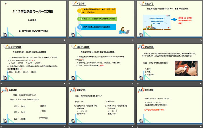 商品销售与一元一次方程PPT,第二部分内容:自主学习