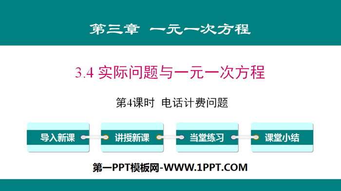 关键词:人教版七年级上册数学PPT课件免费下载,实际问题与一元一次方程PPT下载,一元一次方程PPT下载,电话计费问题PPT下载,.PPT格式;