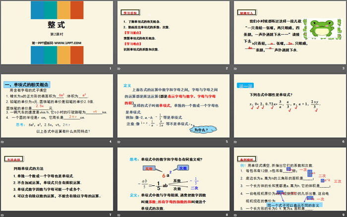 整式PPT,第三部分内容:单项式的相关概念
