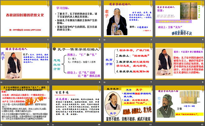 了解老子、孔子的思想政治主张,诸子百家的代表人物及其思想。