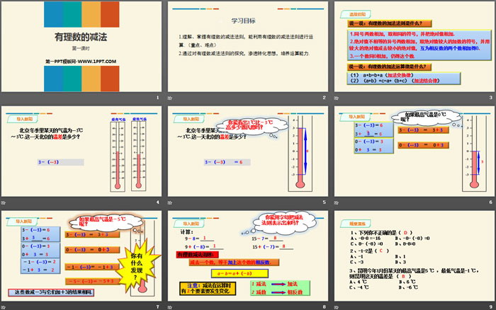 关键词:人教版七年级上册数学PPT课件免费下载,有理数的减法PPT下载,有理数PPT下载,.PPT格式;