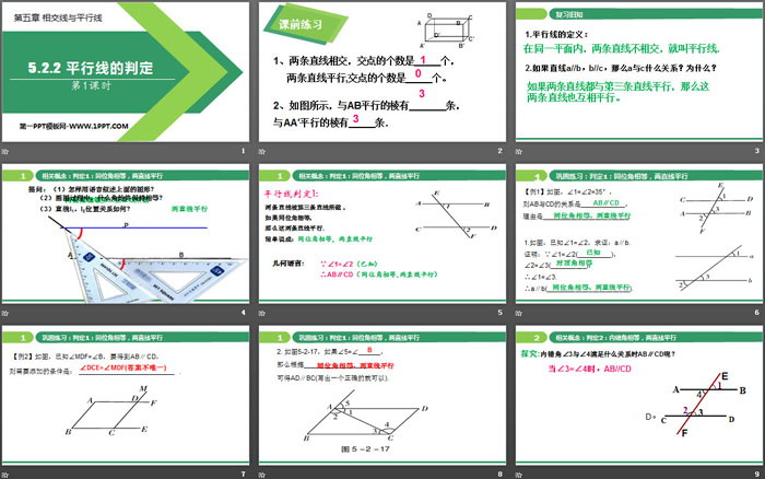 关键词:人教版七年级下册数学PPT课件免费下载,平行线的判定PPT下载,相交线与平行线PPT下载,.PPT格式;