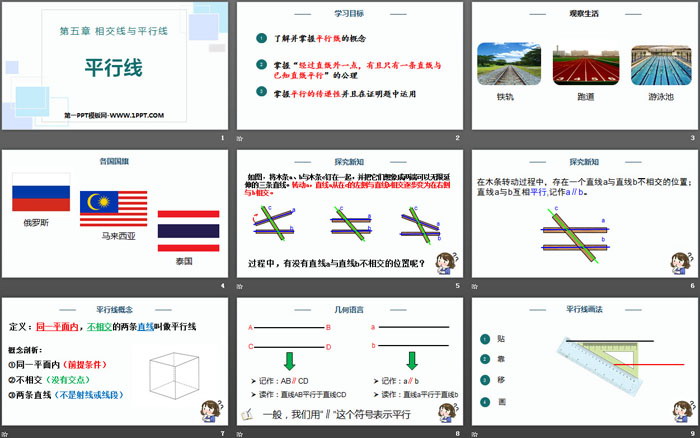 关键词:人教版七年级下册数学PPT课件免费下载,平行线PPT下载,相交线与平行线PPT下载,.PPT格式;