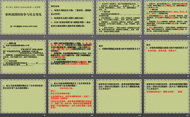 1.知道东周的历史分期,了解春秋、战国的起止时间。
