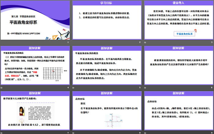 关键词:人教版七年级下册数学PPT课件免费下载,平面直角坐标系PPT下载,.PPT格式;