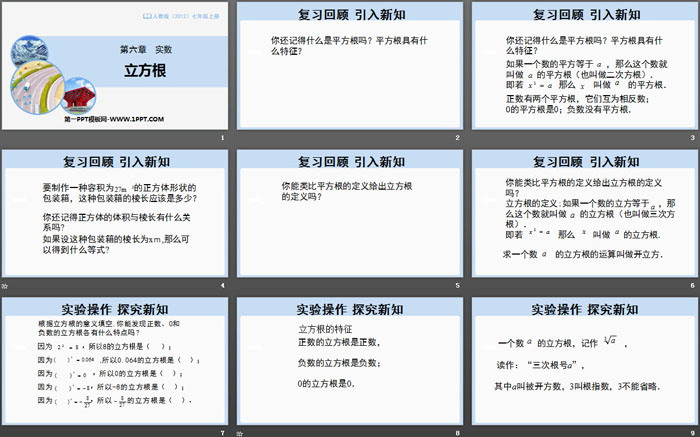 关键词:人教版七年级下册数学PPT课件免费下载,立方根PPT下载,实数PPT下载,.PPT格式;