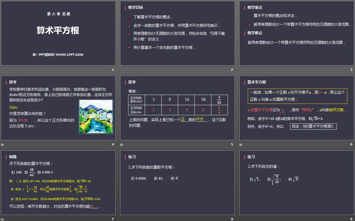 关键词:人教版七年级下册数学PPT课件免费下载,算术平方根PPT下载,实数PPT下载,.PPT格式;