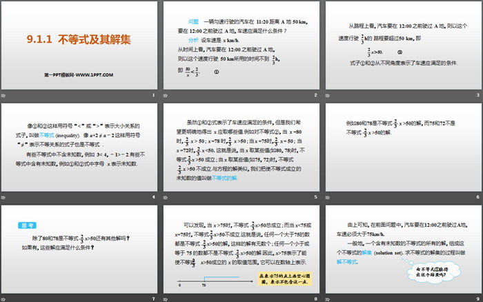 关键词:人教版七年级下册数学PPT课件免费下载,不等式及其解集PPT下载,不等式与不等式组PPT下载,.PPT格式;