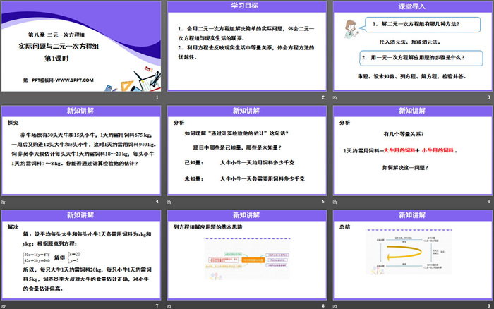 实际问题与二元一次方程组PPT,第五部分内容:课堂小结