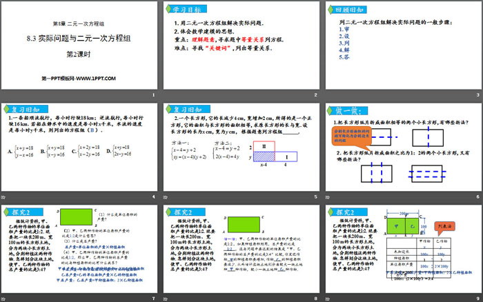 关键词:人教版七年级下册数学PPT课件免费下载,实际问题与二元一次方程组PPT下载,二元一次方程组PPT下载,.PPT格式;