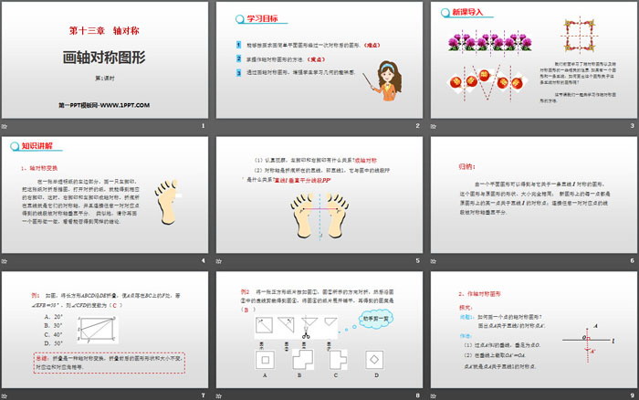 关键词:人教版八年级上册数学PPT课件免费下载,画轴对称图形PPT下载,轴对称PPT下载,.PPT格式;