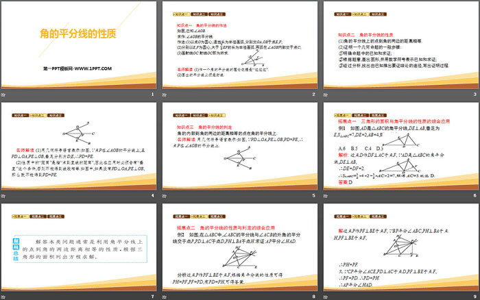 关键词:人教版八年级上册数学PPT课件免费下载,角的平分线的性质PPT下载,全等三角形PPT下载,.PPT格式;