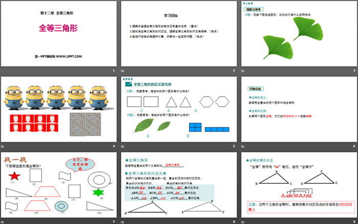 关键词:人教版八年级上册数学PPT课件免费下载,全等三角形PPT下载,.PPT格式;
