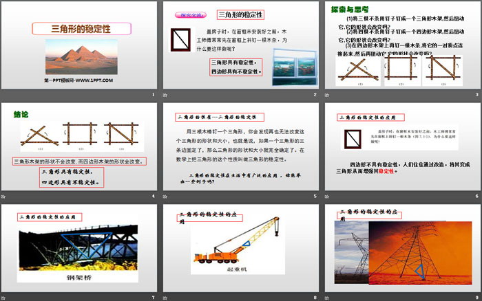 关键词:人教版八年级上册数学PPT课件免费下载,三角形的稳定性PPT下载,三角形PPT下载,.PPT格式;