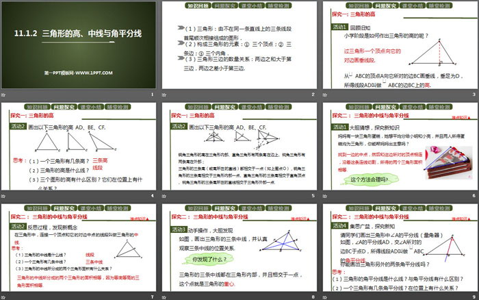 关键词:人教版八年级上册数学PPT课件免费下载,三角形的高中线与角平分线PPT下载,三角形PPT下载,.PPT格式;