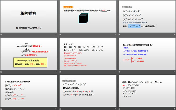 关键词:人教版八年级上册数学PPT课件免费下载,积的乘方PPT下载,整式的乘法与因式分解PPT下载,.PPT格式;