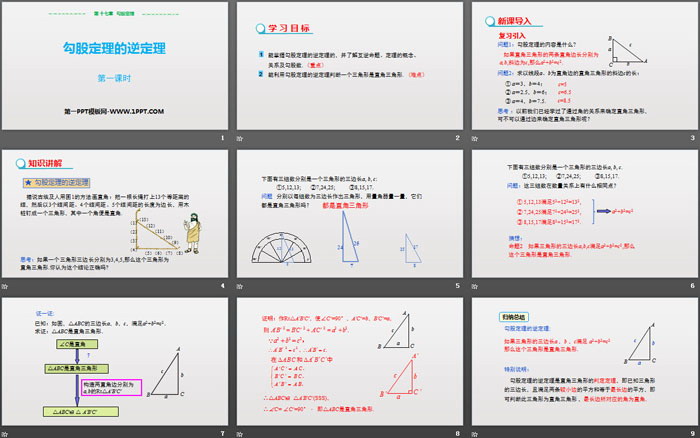 关键词:人教版八年级下册数学PPT课件免费下载,勾股定理的逆定理PPT下载,勾股定理PPT下载,.PPT格式;