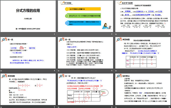 关键词:人教版八年级上册数学PPT课件免费下载,分式方程的应用PPT下载,分式PPT下载,.PPT格式;