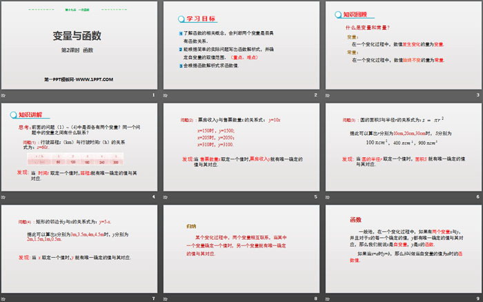 关键词:人教版八年级下册数学PPT课件免费下载,变量与函数PPT下载,一次函数PPT下载,函数PPT下载,.PPT格式;