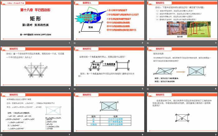关键词:人教版八年级下册数学PPT课件免费下载,矩形PPT下载,平行四边形PPT下载,矩形的性质PPT下载,.PPT格式;