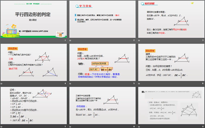 通过探索,猜想,证明三角形的中位线定理,进一步发展推理论证的能力.