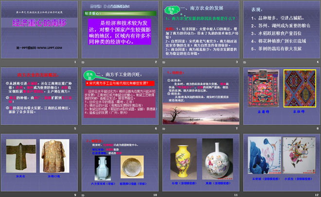 5、经济重心的南移:从唐朝中后期开始的经济重心南移,到南宋最后完成。