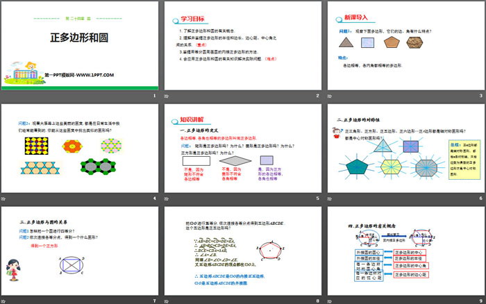 关键词:人教版九年级上册数学PPT课件免费下载,正多边形和圆PPT下载,圆PPT下载,.PPT格式;