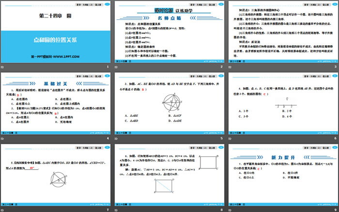 关键词:人教版九年级上册数学PPT课件免费下载,点和圆的位置关系PPT下载,圆PPT下载,.PPT格式;
