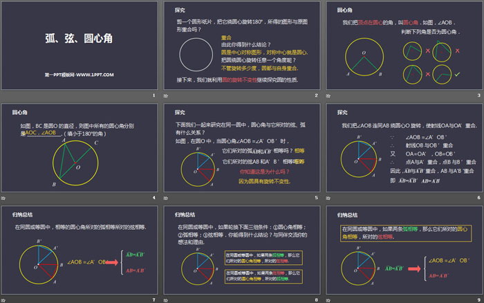 关键词:人教版九年级上册数学PPT课件免费下载,弧弦圆心角PPT下载,圆PPT下载,.PPT格式;