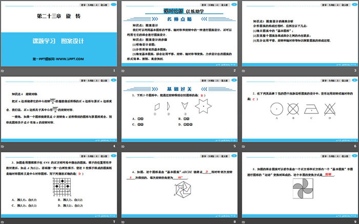 关键词:人教版九年级上册数学PPT课件免费下载,课题学习图案设计PPT下载,旋转PPT下载,.PPT格式;