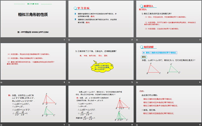关键词:人教版九年级下册数学PPT课件免费下载,相似三角形的性质PPT下载,相似PPT下载,.PPT格式;