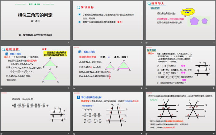 关键词:人教版九年级下册数学PPT课件免费下载,相似三角形的判定PPT下载,相似PPT下载,.PPT格式;