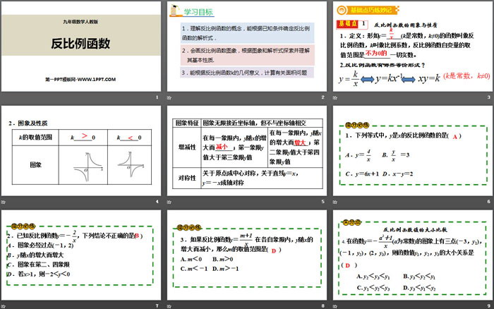 关键词:人教版九年级下册数学PPT课件免费下载,反比例函数PPT下载,.PPT格式;