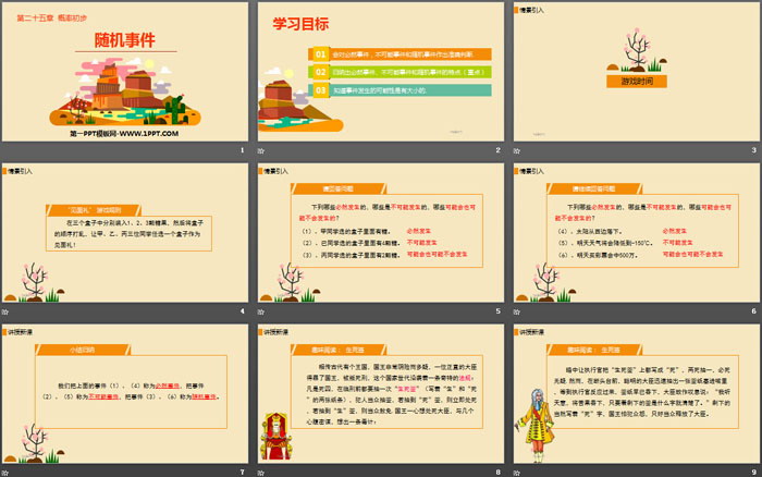 关键词:人教版九年级上册数学PPT课件免费下载,随机事件PPT下载,概率初步PPT下载,.PPT格式;