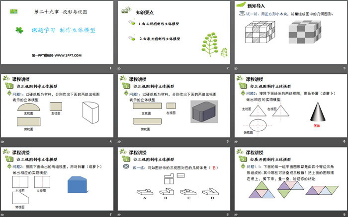 关键词:人教版九年级下册数学PPT课件免费下载,课题学习制作立体模型PPT下载,投影与视图PPT下载,.PPT格式;
