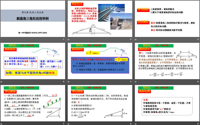 重点:用解直角三角形的知识解决与坡度、坡角有关的实际问题.