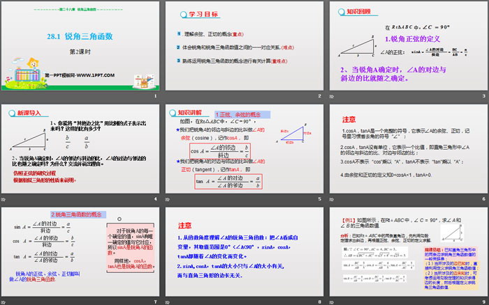 关键词:人教版九年级下册数学PPT课件免费下载,锐角三角函数PPT下载,.PPT格式;
