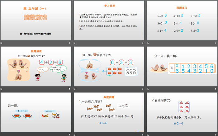 关键词:北师大版一年级上册数学PPT课件免费下载,猜数游戏PPT下载,加与减PPT下载,.PPT格式;