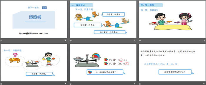 关键词:北师大版一年级上册数学PPT课件免费下载,跷跷板PPT下载,比较PPT下载,.PPT格式;