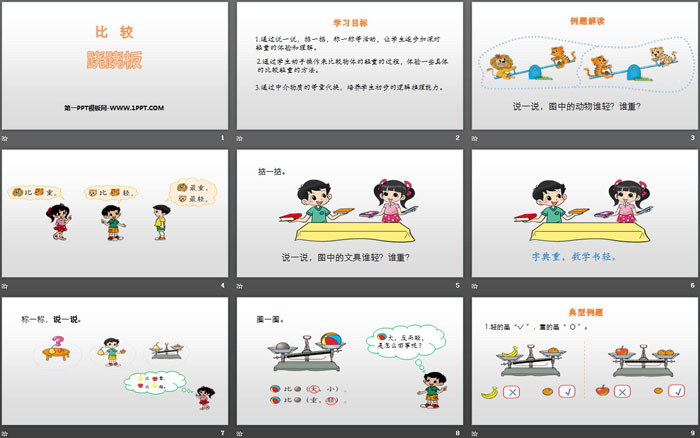 关键词:北师大版一年级上册数学PPT课件免费下载,跷跷板PPT下载,比较PPT下载,.PPT格式;