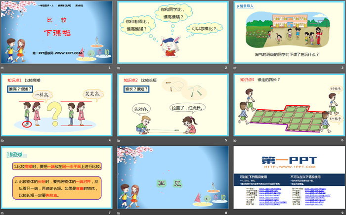 关键词:北师大版一年级上册数学PPT课件免费下载,下课啦PPT下载,比较PPT下载,.PPT格式;