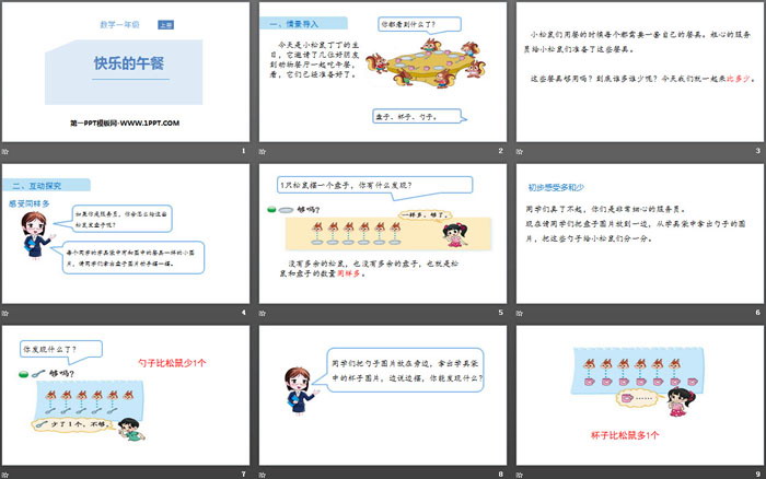 关键词:北师大版一年级上册数学PPT课件免费下载,快乐的午餐PPT下载,生活中的数PPT下载,.PPT格式;