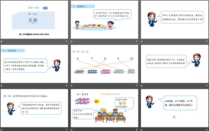 关键词:北师大版一年级上册数学PPT课件免费下载,文具PPT下载,生活中的数学PPT下载,.PPT格式;