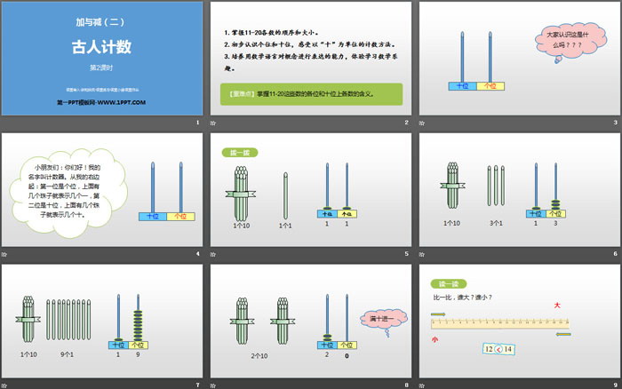 关键词:北师大版一年级上册数学PPT课件免费下载,古人计数PPT下载,加与减PPT下载,.PPT格式;