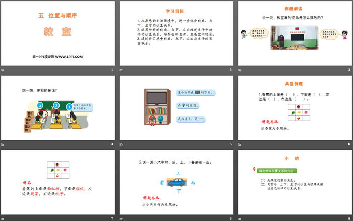 关键词:北师大版一年级上册数学PPT课件免费下载,教室PPT下载,位置与顺序PPT下载,.PPT格式;
